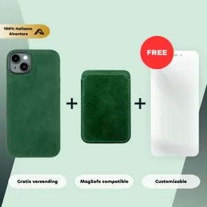 Alcantara bundel – iPhone 14 Plus – Alcantara Case + MagSafe Wallet + Gratis Screenprotector | Emerald Green