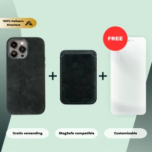 Met deze bundel heb je direct alles in huis om je iPhone compleet te maken. Het Alcantara hoesje zorgt voor een premium uitstraling, de MagSafe Wallet geeft je de vrijheid om je pasjes veilig mee te nemen en de screenprotector houdt je display krasvrij.