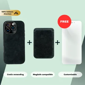 Alcantara bundel – iPhone 16 Pro – Alcantara Case + MagSafe Wallet + Gratis Screenprotector | Carbon Black