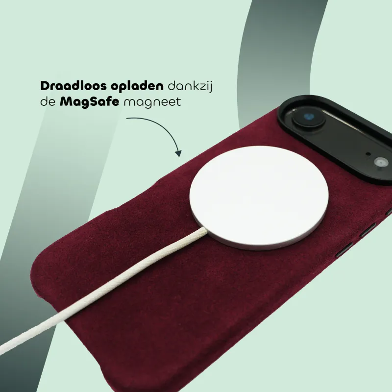 Alcantara is een high-end materiaal dat lijkt op suède, maar sterker, lichter en duurzamer is. Je kent het misschien van luxe sportwagens of designmeubels, en nu is het er ook voor je iPhone. Het voelt zacht aan, oogt exclusief en biedt net dat beetje extra flair dat je niet krijgt met standaard hoesjes.