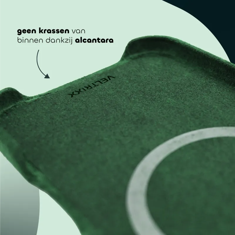 iPhone 17 – Alcantara Case + MagSafe Wallet + Gratis Screenprotector | Mist Green | iPhone 17 Air