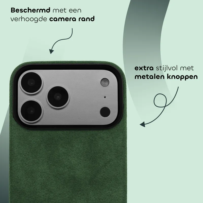 iPhone 17 – Alcantara Case + MagSafe Wallet + Gratis Screenprotector | Mist Green | iPhone 17 Pro
