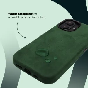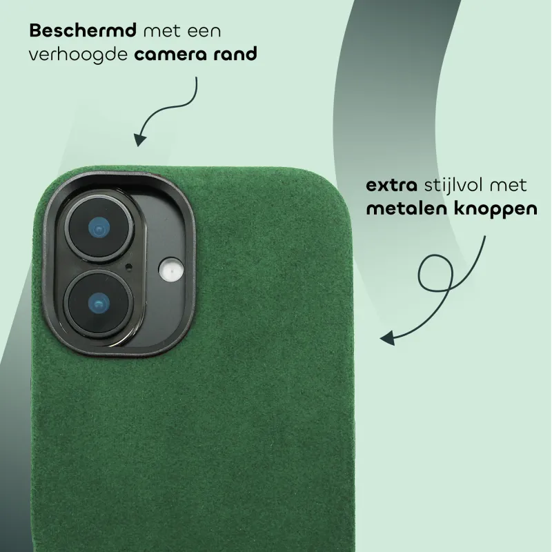 De case heeft opstaande randen rond het scherm en de cameralens, en het zachte Alcantara zorgt voor extra grip. Zo blijft je iPhone beschermd tegen krassen, valpartijen en dagelijks gebruik.