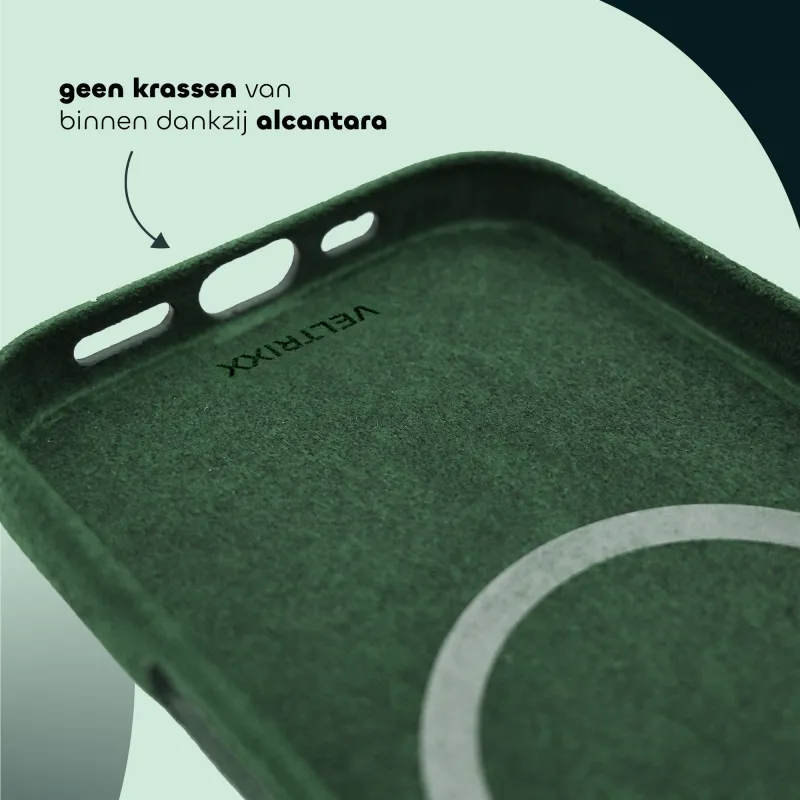 Alcantara is een high-end materiaal dat lijkt op suède, maar sterker, lichter en duurzamer is. Je kent het misschien van luxe sportwagens of designmeubels, en nu is het er ook voor je iPhone. Het voelt zacht aan, oogt exclusief en biedt net dat beetje extra flair dat je niet krijgt met standaard hoesjes.